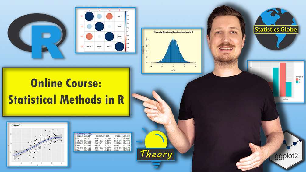 Unlimited lifetime access to the online course "Statistical Methods in R" by Joachim Schork and the Statistics Globe team.